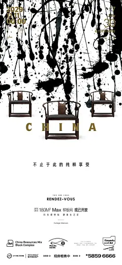中式黑与白墨色渲染水墨笔触黑白艺术元素海报