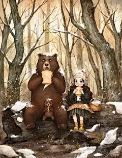手绘插画 人物 风景 意境 美图 治愈系 下雪天