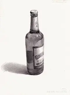 五个组合静物素描步骤图3,罐子玻璃瓶梨子不锈钢盆葡萄,玻璃质感素描,不锈钢质感素描,玻璃酒瓶,素描照片对画,静物素描横构图,来源李宇龙素描教学